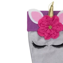Northlight 20″ White Unicorn Face Christmas Stocking With Purple Bow And Cuff