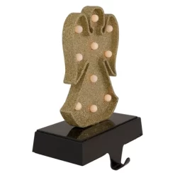 Northlight LED Lighted Glittered Angel Christmas Stocking Holder – 7″ – Gold Finish