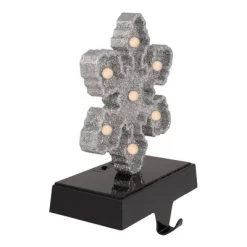 Northlight LED Lighted Glittered Snowflake Christmas Stocking Holder – 7″ – Silver Finish