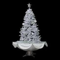 Northlight Lighted Musical Snowing Artificial White Tinsel Christmas Tree – 6′ – White LED Lights