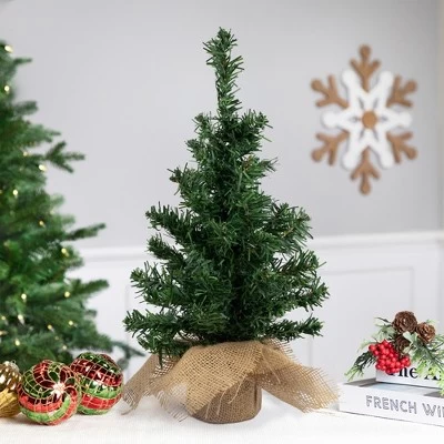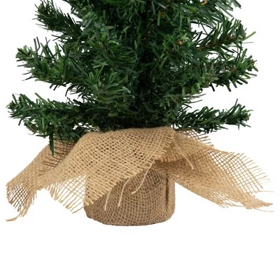 Add a touch of holiday magic to your home with artificial holiday tree. Its realistic design and charming burlap base bring the spirit of the season to any space. Perfect for tabletops, mantels, or as a centerpiece, this tree adds a dash of holiday magic to your home with minimal effort. Make this holiday unforgettable with the timeless charm of our Two-Tone Mixed Green Pine Tree.Product Features:Unlit45 branch tips1.75″ wide branch tipsMedium profile treeComes in a weighted burlap base No assembly required – tree comes in 1 pieceRecommended for indoor useDimensions: 18″ high (from the bottom of the base to the top of the tree)9.5″ base diameter (at the widest point)Material(s): PVC/wire/burlapNote: Branches are compressed for shipment, and need to be fluffed out upon arrival to look like the photo.