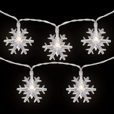 These battery-operated silver snowflake fairy lights will make your holiday decorating a breeze. Battery operated means you can place them anywhere. Durable and highly flexible, these lights can be displayed quickly and easily for all of your holiday decorating needs. Product Features:Color: warm white bulbs / silver copper wireClear snowflake designNumber of bulbs on string: 10Bulb size: micro fairySpacing between each bulb: 4″Lighted length: 3.25’Total length: 4.25’12” lead cordAdditional Product Features:LED lights 90% less energyBulb stay cool to the touchUL certified and approved for indoor use onlyRequires 2 ‘AA’ batteries – not includedConvenient on/off switch on battery packNon-replaceable bulbsCannot connect multiple sets togetherMaterial(s): plastic/wire