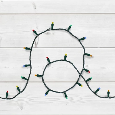 These bright multi-color LED lights are sure to bring color to your home and decorations. Use them for your holiday decor, a party, or for everyday household use. LED bulbs are cool to the touch and use much less energy than a traditional incandescent bulb.Product Features:Color: multi-color bulbs / green wireMulti-color consists of red, orange, yellow, green and blueNumber of bulbs on string: 200Bulb size: wide angleBulb type: LEDSpacing between each bulb: 3″Lighted length: approx 49′ 24″ lead cord4″ tail cordAdditional Product Features:Commercial grade lightsLED lights use 90% less energy Durable non-glass replaceable bulbsCool to the touch UL certified and approved for indoor or outdoor use If one bulb burns out, the rest will stay litLights are equipped with Lamp Lock feature, which makes them replaceable, interchangeable and keeps them from falling outComes with replacement bulbs and spare fusesContains end-to-end connectors which allows you to connect multiple sets together (not to exceed 210 watts)