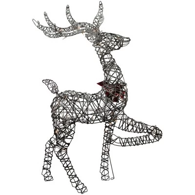 Everyone loves reindeer for their magic and beauty. This beautifully crafted pre-lit reindeer will add the perfect dose of sparkle to your holiday. Complete with a red bow around his neck, he will be perfect for your porch, lawn or anywhere you to add some holiday charm.Product Features:Reindeer lighted holiday decorationPre-lit with 80 clear lightsBulb size: miniBulb type: incandescentIf one bulb burns out, the rest will stay litContains 1 plug with an end connector which allows you to stack multiple lighted items together (210-watt max)Comes with replacement bulbs and spare fusesSome assembly required; ground stakes not includedUL approved and certified for indoor or outdoor useRecommended for outdoorDimensions: 60.25″H x 38″W x 12.5″DMaterial(s): metal/plastic/fabric