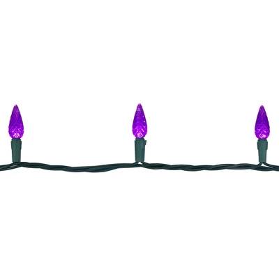 Northlight 70-Count Purple LED Faceted C6 Christmas Lights Set, 23 Ft Green Wire