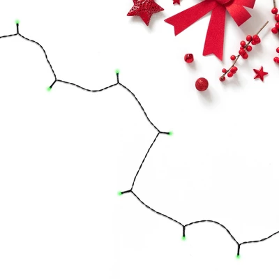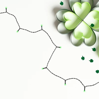 Add a festive touch anywhere with this 20-count battery-operated green LED light set! Whether you’re decorating for holiday, St. Patrick’s Day, or showing off your team spirit, these wide-angle LED lights provide a vibrant green glow to enhance any indoor space. With a 9.5-foot green wire and a total string length of 11 feet, these lights are ideal for wreaths, mantels, centerpieces, and more—no outlets required! Powered by 3 AA batteries (not included), the compact battery pack features an easy on/off switch for convenient operation. Designed for indoor use only, this LED light set is energy-efficient and long-lasting, making it a hassle-free way to brighten up your celebrations. Perfect for parties, holidays, or everyday decor!Product Features:Color: green bulbs / green wire Number of bulbs on string: 20Bulb size: concave wide angleSpacing between each bulb: 6″Lighted string length: 9.5’Total string length: 11’17” lead cordAdditional Product Features:LED lights use 90% less energy Cool to the touch Requires 3 “AA” size batteries (not included)If one bulb burns out, the rest will stay litComes with non-replaceable bulbsOn/off switch located on the back of battery packCannot connect multiple sets togetherFor indoor use only