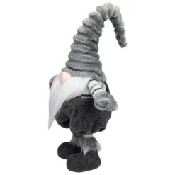 Gnomes are best known for guarding Earthly treasures, providing good luck, and are perfect for protecting your holiday goodies! This adorable gray and white bouncing gnome will add “protection” and increase the level of cuteness in your holiday decor. Add this guy to your gnome collection or start one in your home! Features:Tabletop bouncy gnome holiday decorationTextured gray velour hatWired hat for easy positioningHis gray overalls match his gray feetWhite, gray, and black striped sweaterLarge bulbous nose with a long white beardThis is a bounceable gnome Dimensions:18″H x 5″W x 5″DMaterials:polyester