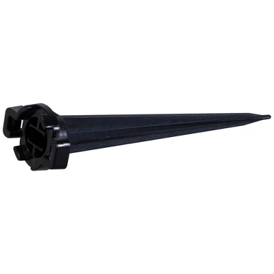 Illuminate your outdoor spaces with ease using this set of 100 durable black C7 and C9 holiday light stakes. Perfect for walkways, driveways, gardens, and lawns, these stakes securely hold C7 or C9 light strings in place, keeping your holiday displays neat and professional-looking. Designed for all-season use, each stake is crafted from sturdy materials to withstand both permanent and seasonal lighting setups. These stakes are engineered to hold bulbs on top, ensuring nothing obstructs the view while neatly tucking wires under the side hooks for a clean, polished look. Installation is simple: just hammer each stake into the ground and attach your favorite C7 or C9 lights. Change light colors to match any season or holiday for a versatile, festive display that can last all year long. Perfect for creating vibrant, safe, and organized outdoor light displays, these 5″ black stakes are an essential accessory for holiday decorators, event planners, and anyone looking to enhance their home or yard with beautiful, professional-grade lighting.Features:100-piece set Holds C7 or C9 light sets Easy to installIdeal for lining your walkway or drivewayDurable construction suitable for permanent and seasonal displaysSimply hammer the stake into the groundRecommended for outdoor useDimensions: 4.5”H x 1.5“W x 1“D Material(s): plastic