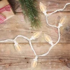 Bring back memories of holiday past with these old-fashioned style lights. C9 LED lights are one of the most popular light styles for illuminating rooftops, decorating large trees, and outlining driveways. LEDs are much more energy-efficient than traditional incandescent lights and stay cool to the touch, eliminating the risk of overheating. The smooth finish mimics the design of the retro-style C9 lights that we loved for many years. Product Features: Color: warm white bulbs / white wire Number of bulbs on string: 100 Bulb size: C9 light covers over wide angle bulbs Bulb cover: smooth finishSpacing between each bulb: 4.5″ Lighted string length: 40′ Total string length: 49′ 4.5″ lead cord 4.5″ tail cord Additional Product Features: Commercial length lights LED lights use 90% less energy If one bulb burns out, the rest will stay lit Durable non-glass replaceable bulbs Screw in C9 light covers Cool to the touch Lights are equipped with a clip on the base of each bulb so that you can easily attach the lights to trees, bushes, and more Contains end-to-end connectors which allow you to connect multiple sets together (not to exceed 210 watts) Comes with replacement bulbs and spare fuses UL certified and approved for indoor or outdoor useWire gauge: 22 120 volts, 60 hertz, .08 amps, 9.6 watts