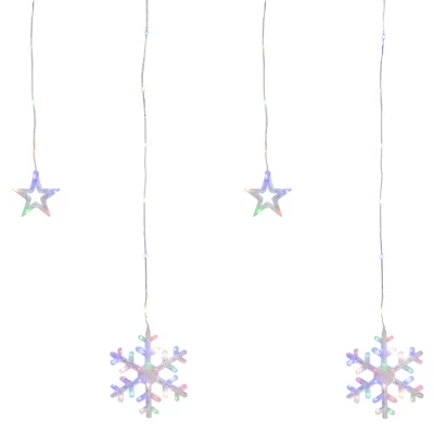 Spread the feeling of holiday everywhere in your home with these multi-color window curtain LED stars. Great for hanging in your window or threshold. LED bulbs are cool to the touch and use much less energy than a traditional incandescent bulb. Great for holiday, birthdays, and much more!Product Features:Color: multi-color bulbs / clear wire Number of bulbs on string: 250Bulb Type: LEDBulb size: micro-fairyCurtain contains 10 alternating drops of large and small stars Each large snowflake contains 20 bulbs Each small star contains 5 bulb Approximate drop lengths: 2.25′ or 3.5’Spacing between each small light on drop: 4″ Spacing between each drop: 8″ Lighted length: 4.75’Total length: 6’11.75″ clear lead cord Additional Product Features: LED lights use 90% less energy Cool to the touchIf one bulb burns out, the rest will stay lit Contains a class 2 power supply AC adapter plug, indoor onlyUL certified and approved for indoor or outdoor usePower unit input: 120V, AC 60Hz, 0.20APower unit output: 4.5V, 0.80ANote: 250 count of lights includes only 1 strand of lights with 250 bulbs