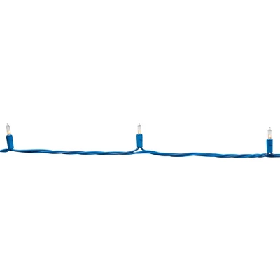 Illuminate your holiday display with this mini holiday commercial light set featuring 100 clear incandescent mini bulbs on a durable blue wire. With a lighted length of 56.25 feet and 6-inch bulb spacing, this commercial-grade light set is designed for both indoor and outdoor holiday decorations. The set measures a total length of 60 feet, with a 3.25-inch lead cord and a 6-inch tail cord for easy installation. Built with end-to-end connectors, you can safely connect multiple sets together to create a larger display. These clear holiday mini lights stay lit even if one bulb burns out, ensuring a consistent, glowing holiday display. Each set comes with replacement bulbs and spare fuses for long-lasting use. UL-certified for safety, this light set is ideal for commercial holiday displays, residential holiday decorating, and professional installations. The blue wire holiday lights add a stylish touch, blending seamlessly with blue-themed holiday decor, displays, winter wonderland decorations, holiday trees, wreaths, garlands, rooftops, porches, office spaces, and school holiday displays. Whether you’re decorating indoors or outdoors, this 100-count clear incandescent mini light set on blue wire offers a classic, professional-quality look perfect for both festive and elegant settings.Product Features:Color: clear bulbs/blue wire Number of bulbs on string: 100 Bulb size: mini Bulb type: incandescentSpacing between each bulb: 6″ Lighted length: 56.25′ Total length: 60′ 3.25″ lead cord 6″ tail cord Additional Product Features: If one bulb burns out, the rest will stay lit Contains end-to-end connectors which allow you to connect multiple sets (not to exceed 216 watts) Comes with replacement bulbs and spare fuses UL certified and approved for indoor/outdoor use Wire gauge: 22 120 volts, 60 hertz, .34 amps, 40.8 watts