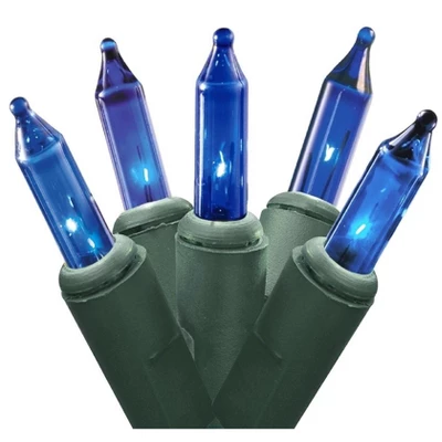 These mini net-style lights bring a vibrant and festive glow to your holiday decor. This net-style trunk and bush wrap light set includes 150 bright blue mini incandescent bulbs on a green wire that blends seamlessly into natural or artificial greenery for a clean, professional look. Measuring 2 feet wide by 8 feet long, these holiday net lights cover a 24-square-foot lighted area, making them the perfect FAST and EASY way to decorate tree trunks, hedges, bushes, shrubs, posts, porch columns, topiaries, and outdoor greenery in just minutes. Each set features a 24-inch lead cord and an 8-inch tail cord for flexible placement, plus end-to-end connectors that allow you to safely connect up to three sets for decorating larger trees and landscapes. UL certified for safe indoor and outdoor use, these mini net-style holiday lights include replacement bulbs and fuses, and are designed so that if one bulb burns out, the rest stay lit for a continuous, uninterrupted glow. Perfect for creating a classic holiday atmosphere, winter wonderland displays, or colorful holiday landscapes, these blue incandescent net lights on green wire add festive illumination that brightens your yard, home, or holiday event all season long.Product Features:Color: blue bulbs / green wire Bulb size: mini Bulb type: incandescentNumber of bulbs: 150Dimensions: 2′ x 8’Total lighted area: 24 sq. ft.24″ lead cord (from the plug to the first bulb)8″ tail cordAdditional Product Features: UL certified and approved for indoor or outdoor useIf one bulb burns out, the rest will stay litComes with replacement bulbs and spare fusesContains end-to-end connectors which allow you to connect multiple sets together (not to exceed 210 watts)Wire gauge: 22120 volts, 60 hertz, 0.51 amps, 61.2 wattsMaterial(s): glass bulbs/wire/plastic