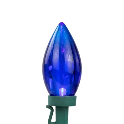 This sixteen-foot light set features durable, cool-to-the-touch LED bulbs on a green wire, perfect for indoor and outdoor use. With energy-efficient LEDs that use 90% less energy, these lights are built to last while saving on energy costs. Each bulb features a convenient clip for easy attachment to trees, bushes, or decorations. UL certified and approved, this versatile set is ideal for holiday, the 4th of July, Memorial Day, or any festive occasion.Product Features:Color: red, white, and blue bulbs / green wireNumber of bulbs on string: 25Bulb size: C9Bulb type: LEDSpacing between each bulb: 8”Lighted length: 16’Total length: 17’6” lead cord6” tail cordAdditional Product Features:LED lights use 90% less energy Durable non-glass replaceable bulbsCool to the touch Strand contains a rectifier which eliminates the shimmer and shake in the light setUL certified and approved for indoor or outdoor use If one bulb burns out, the rest will stay litEach bulb is equipped with a clip on the base to easily attach the lights to trees, bushes, and moreComes with a replacement bulb and spare fuseContains end-to-end connectors which allow you to connect up to 87 sets together (not to exceed 210 watts)Wire gauge: 22120 volts, 60 hertz, 0.02 amps, 2.4 watts