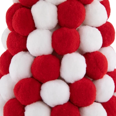 Northlight Pom Pom Cone Tree Christmas Decoration – 13″ – White And Red