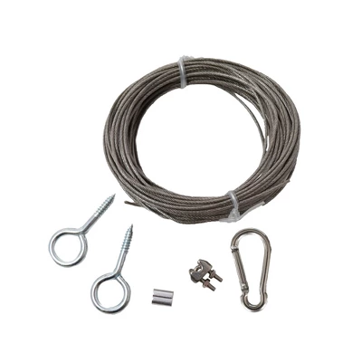 This 40ft Cable Wire Kit is the perfect solution for your holiday decorating needs. This kit includes everything you need to hang your outdoor holiday lights with ease, including a 40ft cable wire, clips, and screws. This cable wire kit is designed to withstand the elements, ensuring your holiday lights stay securely in place throughout the holiday season. Product Features:Outdoor cable wire kitKit includes: 1ct 40ft Cable Wire, 25ct Cable Wire Clips, 1ct Carabiner, 1ct Adjustable Metal Crimp, 1 Metal Crimp and 2ct hook and eye bolt screwsCompatible with most types of string lights and light bulbsFor outdoor use only