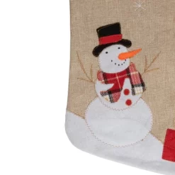 Northlight 19″ Beige And Red Burlap “Merry Christmas” Snowman Christmas Stocking